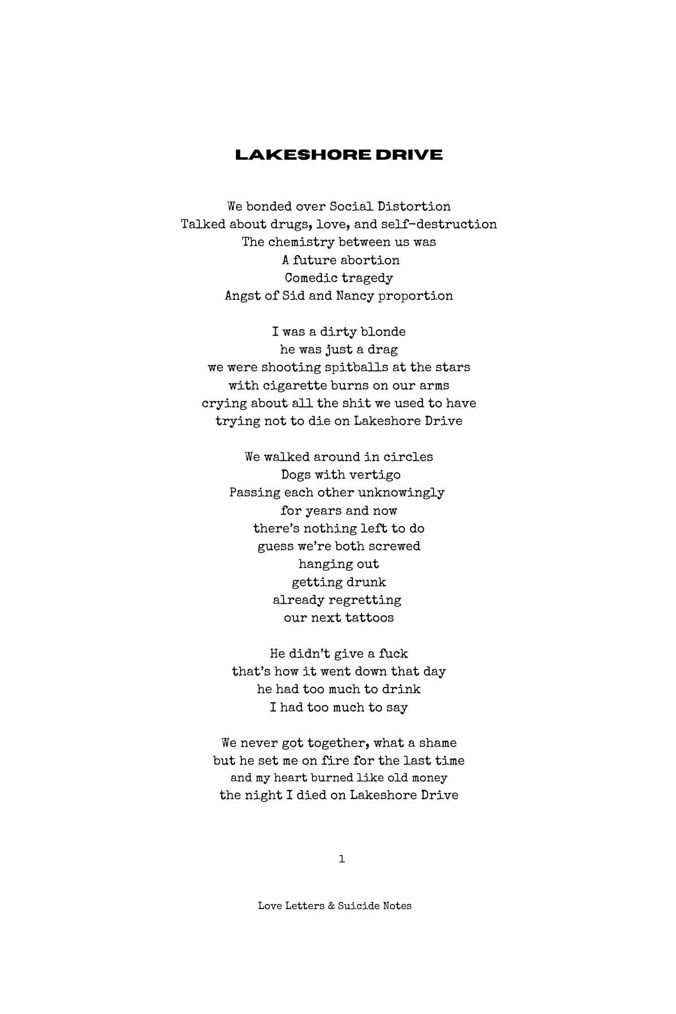 “Lakeshore Drive” from Love Letters & Suicide Notes.